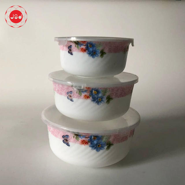| Product Name | 3 pieces promotional opal glass fresh seal bowl set blue decal printing salad bowl |