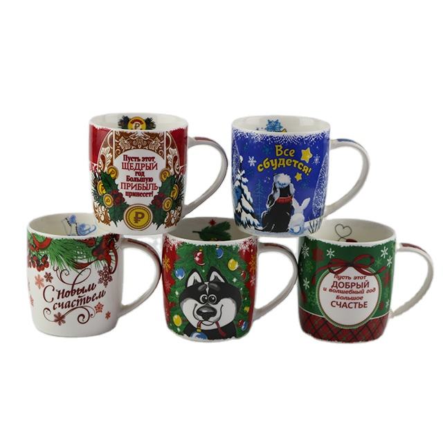 Creative cute cartoon coffee mug christmas decal mug for Russia market