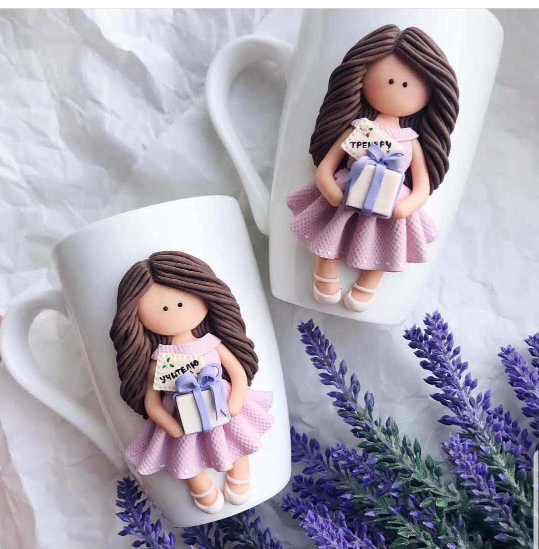 Cute polymer clay girls ceramic coffee mug funny gift mug