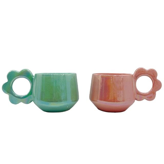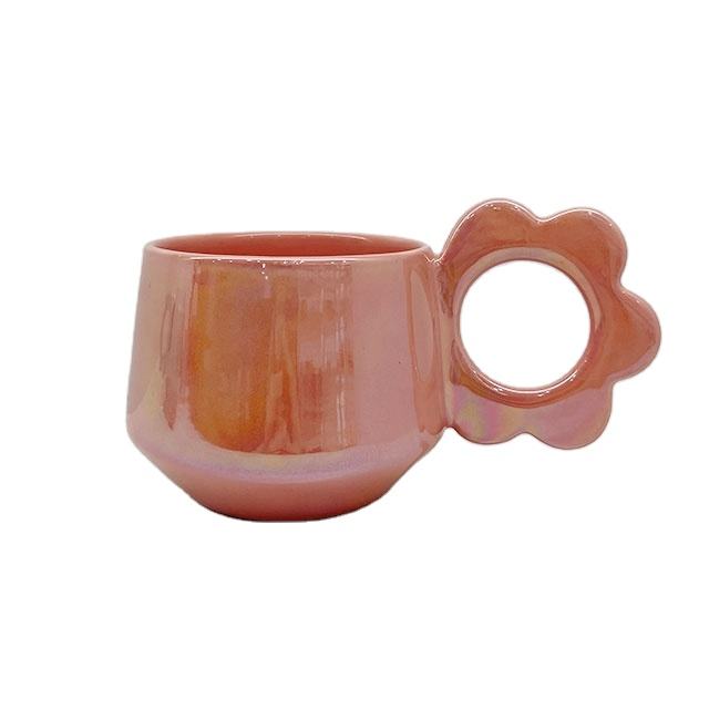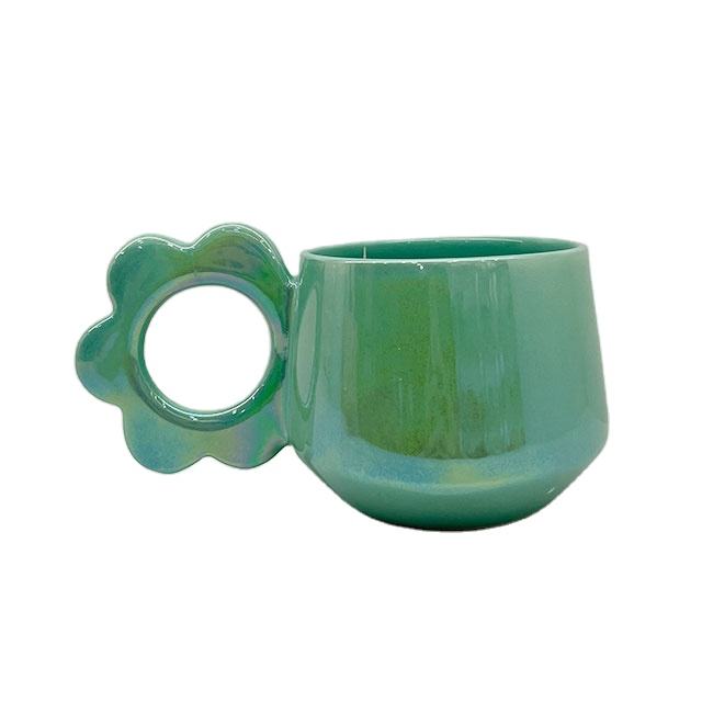 Flower handle color glaze mug nordic design coffee travel mug  Flower handle color glaze mug nordic design coffee travel mug