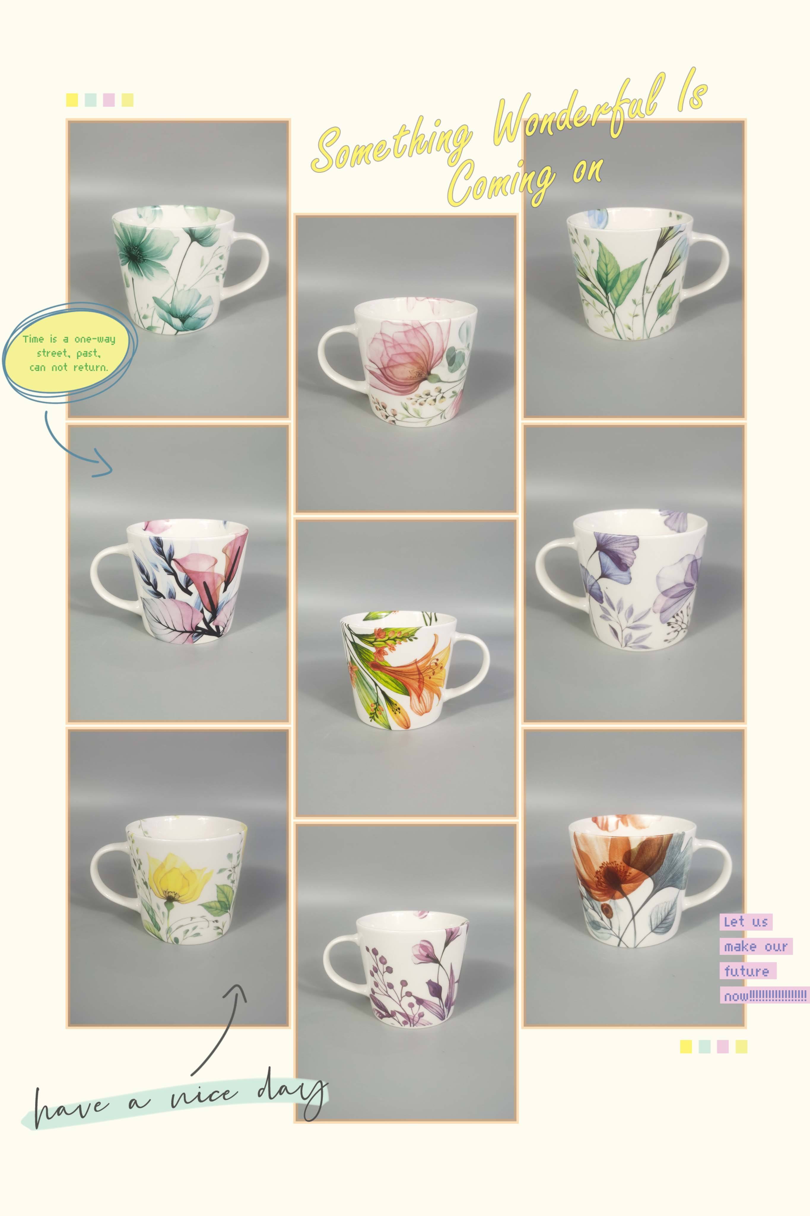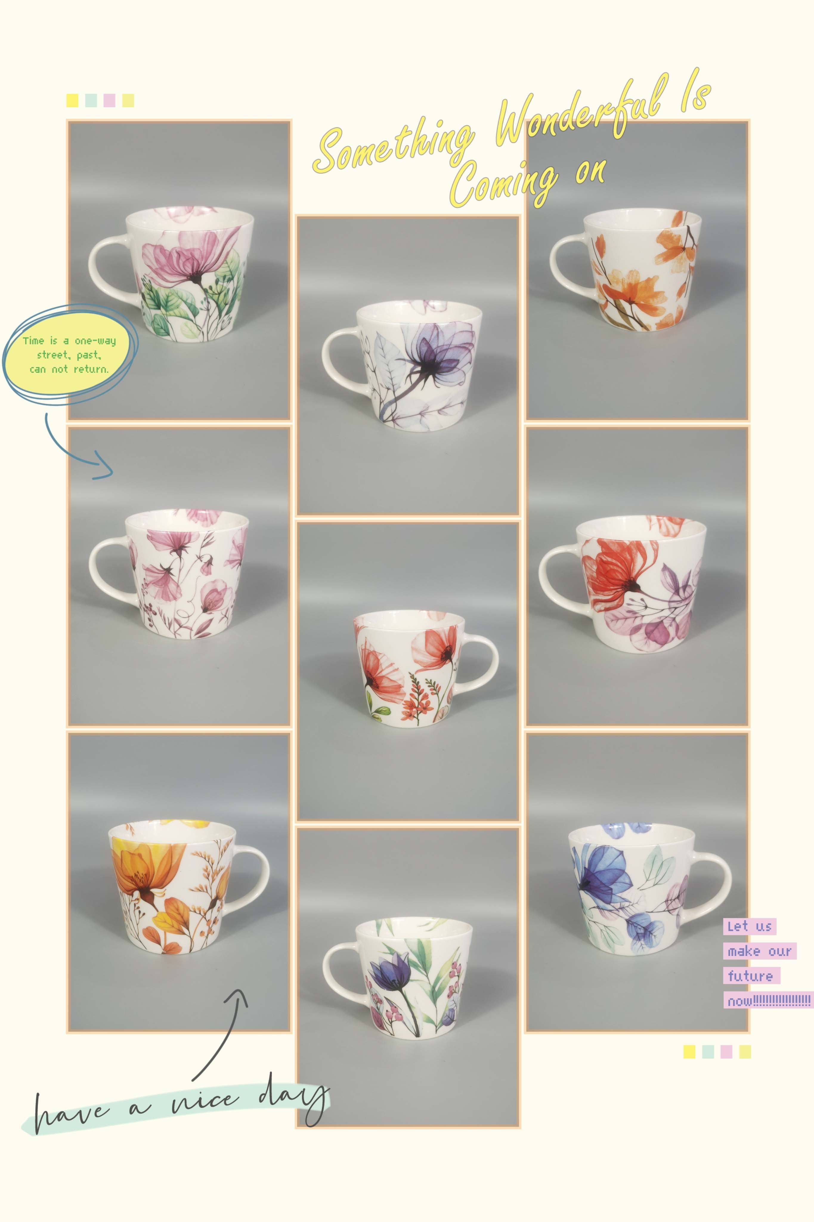 | Item | Cheap 12OZ color printing embossed bone China coffee mug |