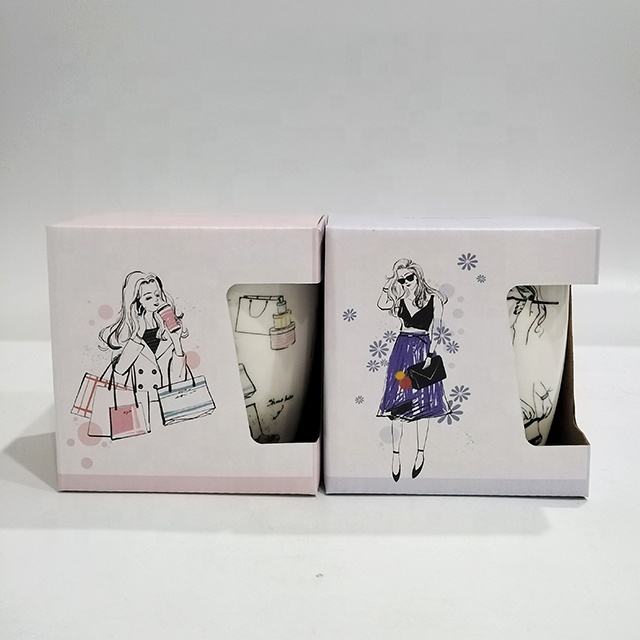 bulk packing, brown/white/color/window/gift/PVC box,Pallet,Polyfoam,Display box or at your request Newest cute pink handheld color box mother's day gift coffee mug