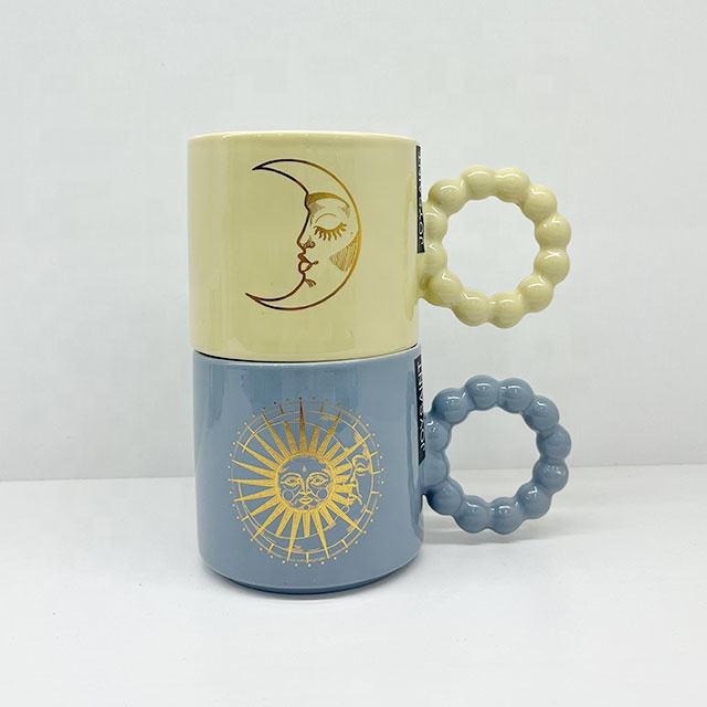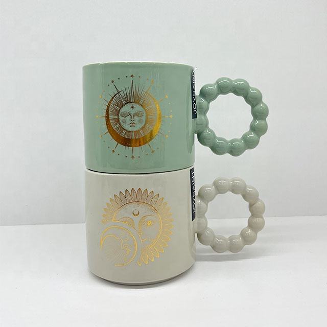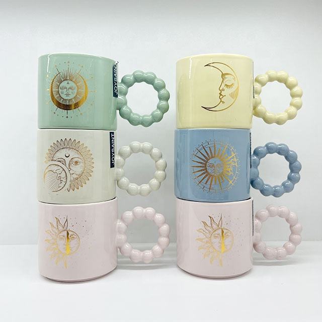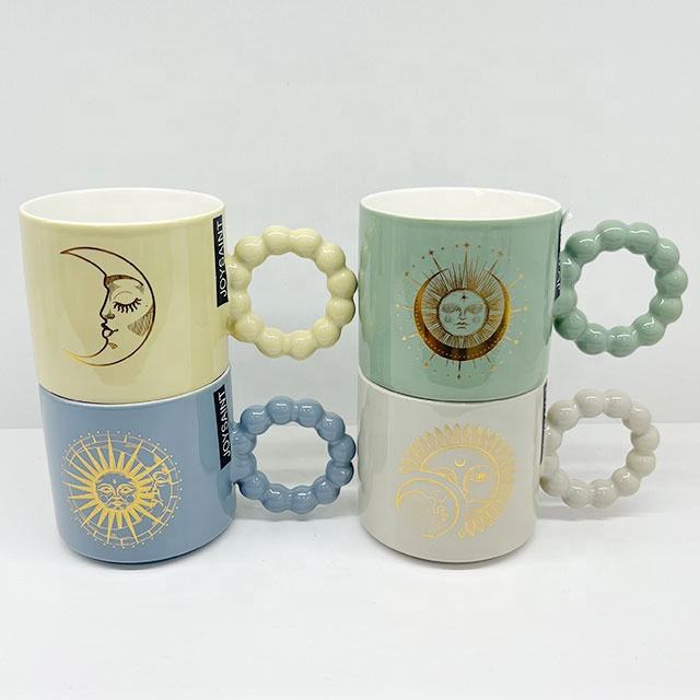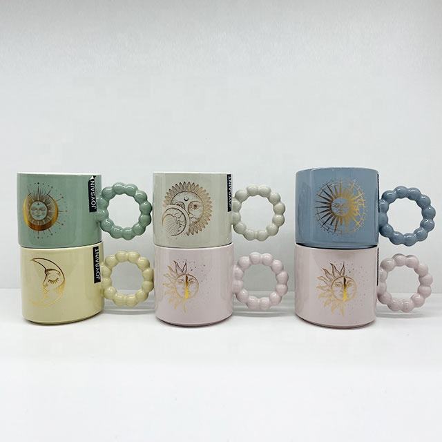 Round handle color glaze coffee mug set gold decal mug  Round handle color glaze coffee mug set gold decal mug
