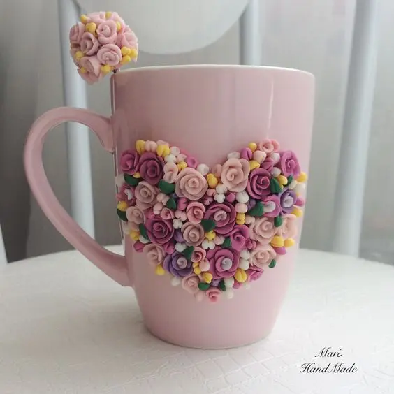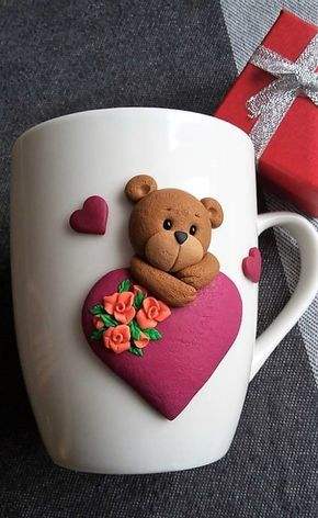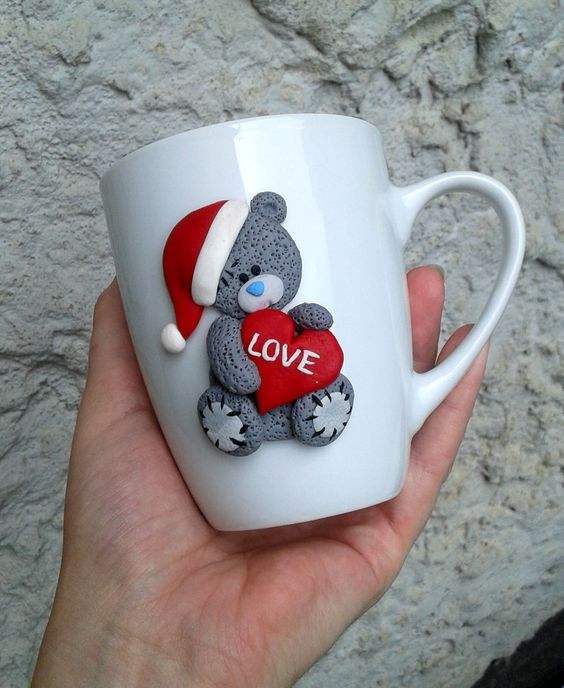 Valentine's gift polymer clay mug ceramic coffee cup 3D character mug